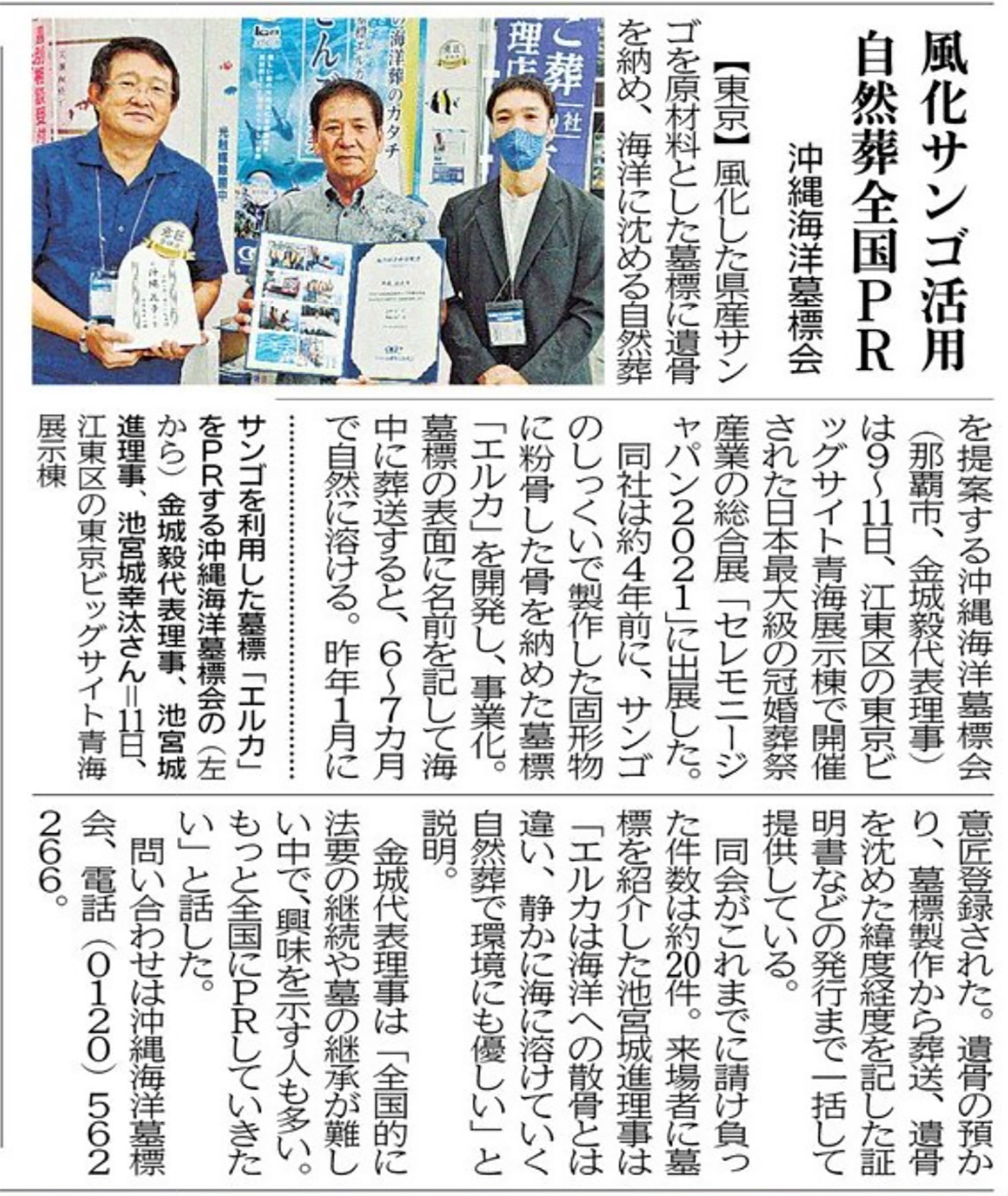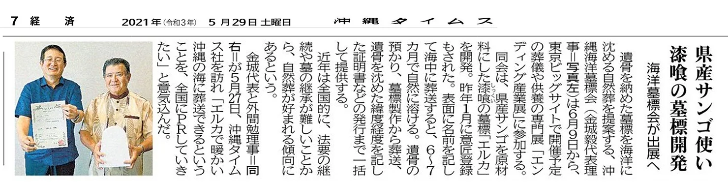 沖縄サンゴを原料とした漆喰(消石灰)で製作した墓碑エルカ(意匠登録済)に