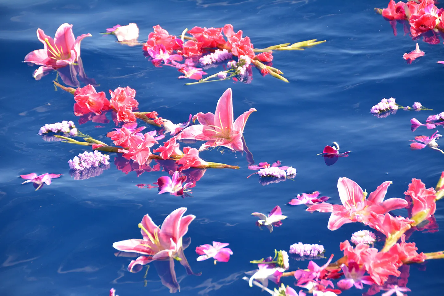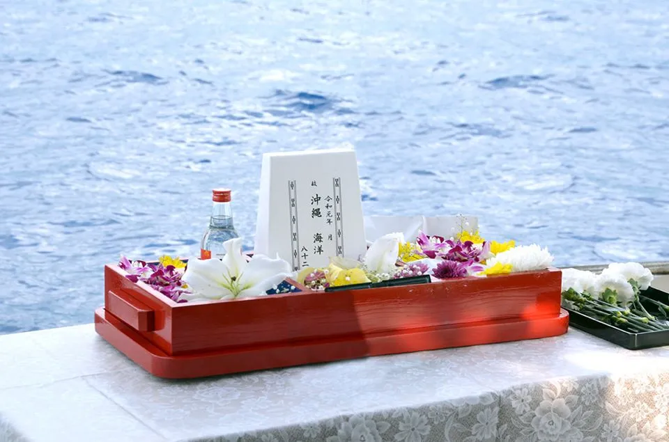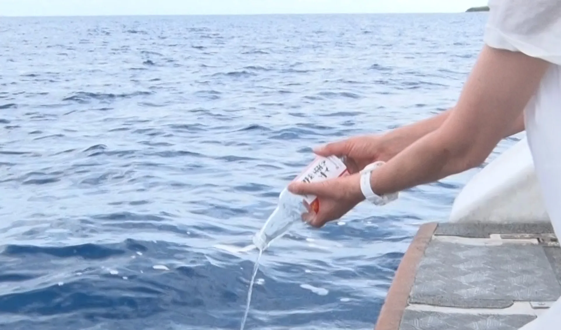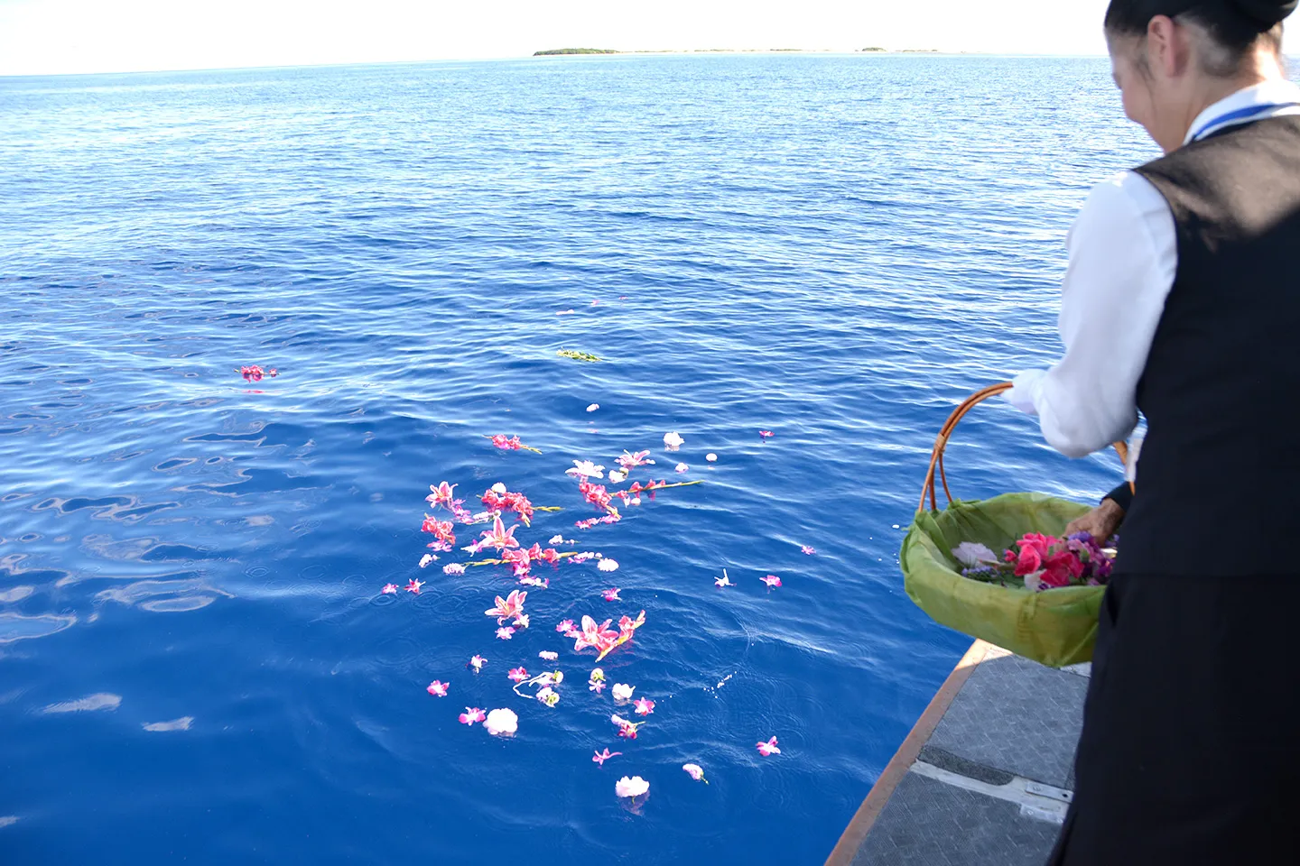 献酒・献花を捧げて海洋葬の儀式は終了です。
